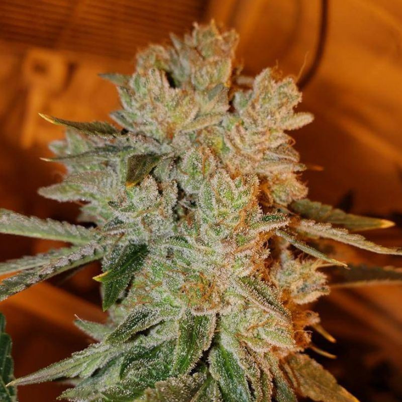 La variedad tiene una dominancia Indica del 95% y una ligera mezcla de Sativa (5%), lo que se traduce en un efecto fuerte y relajante, ideal para el descanso nocturno. Su contenido de THC de hasta 23% garantiza sensaciones intensas y un impacto potente en el cuerpo, manteniendo una nota dulce y afrutada en el aroma.